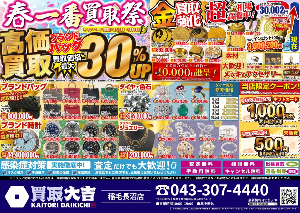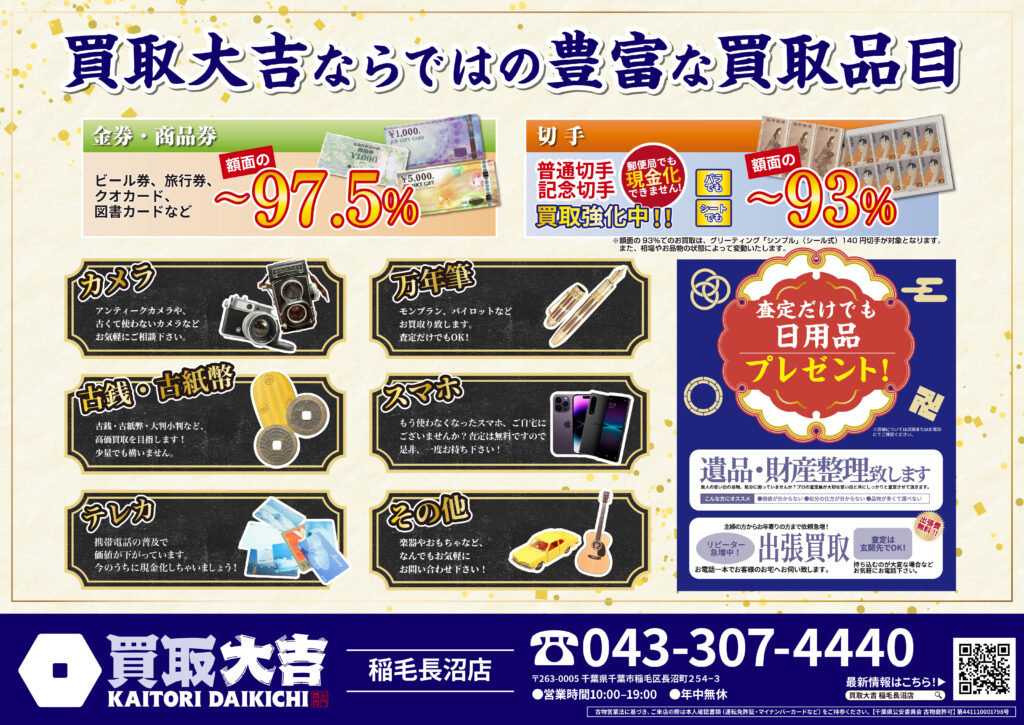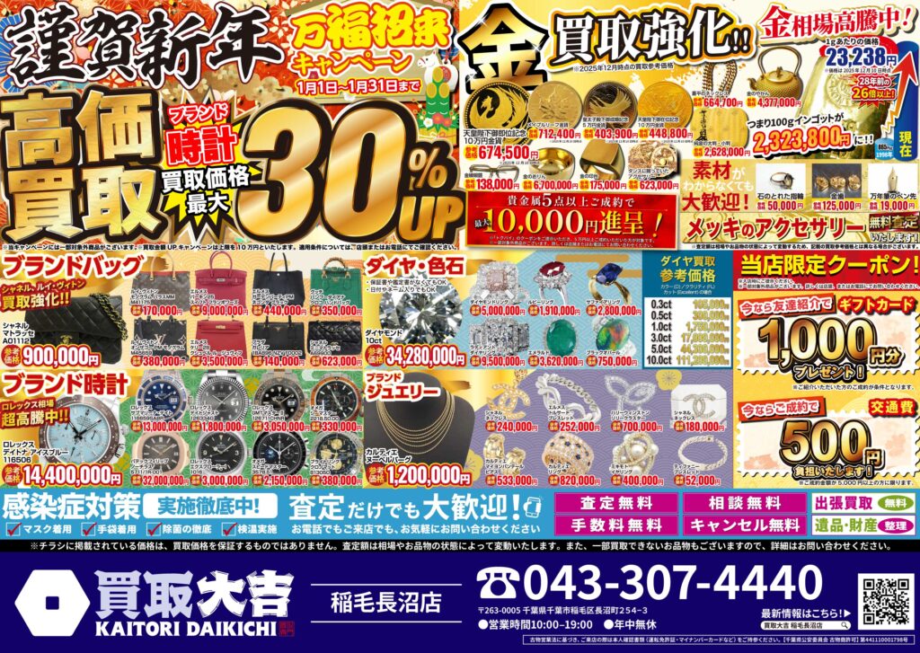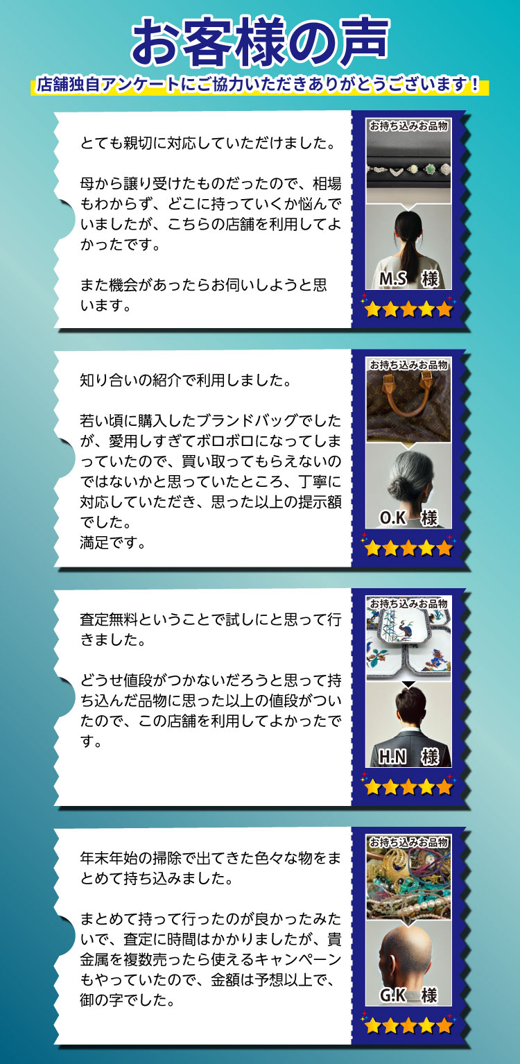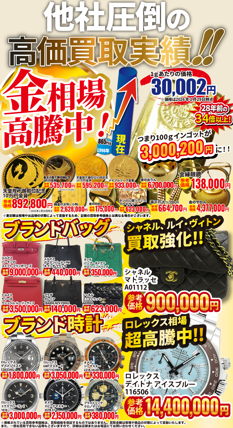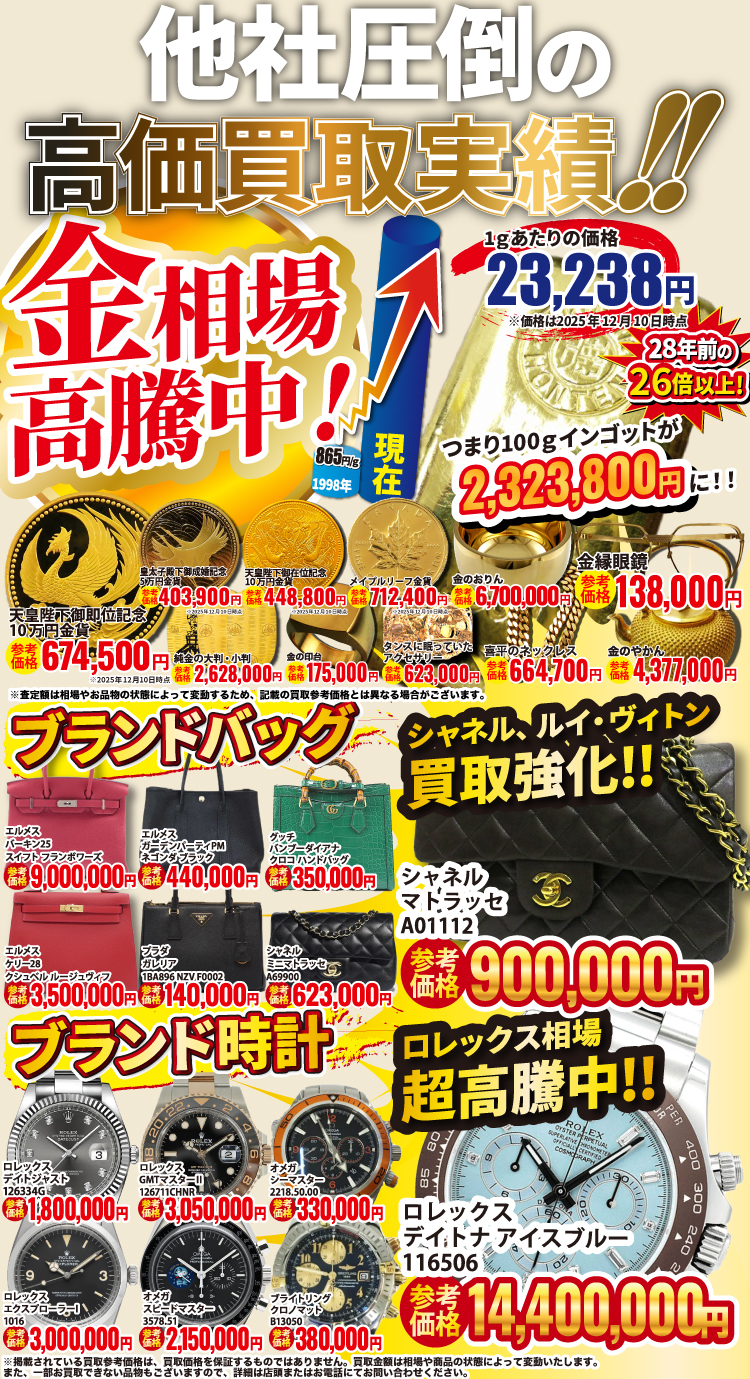 金・貴金属・ブランド品はもちろん、お値段がつくか迷われているものも是非お持ちください。